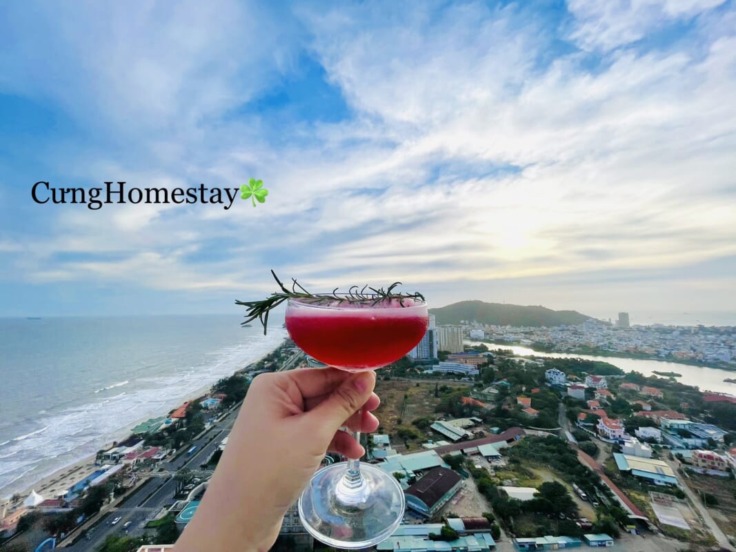 Sảnh cao cấp có ghế ngồi cho khách du lịch. Và cafe nhà hàngsân thượng tầng 36 view 360 độ toàn cảnh biển và Thành Phố Vũng Tàu